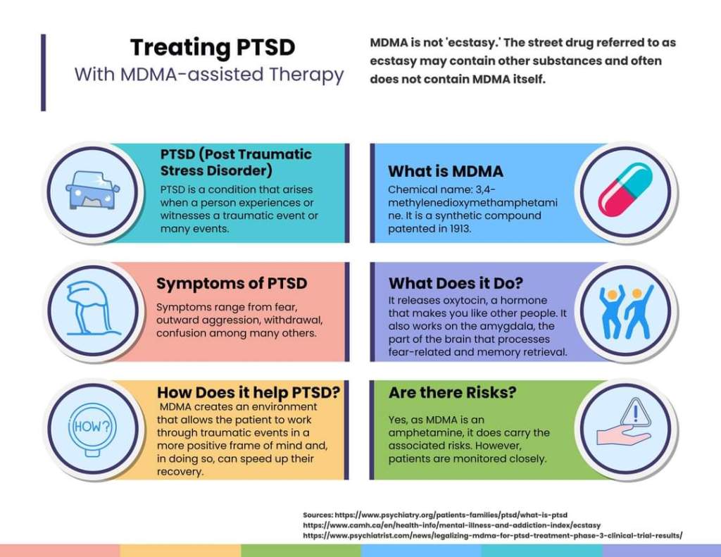 This is an infographic I did recently for my psych class. Therapists have been using MDMA as a tool to help PTSD sufferers recover from this deblitating condition, it is in trials and legalization of this drug for the purpose full on treatment is in the works.